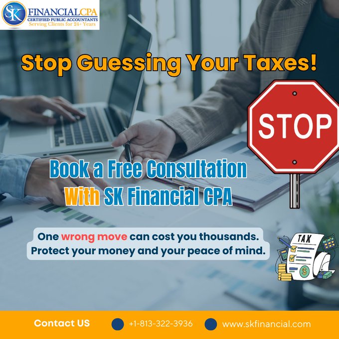 @skfinancial Still Guessing Your Taxes? Don't think over. Book a Free Consultation with SK Financial CPA Click 👇 https://t.co/G62BSg7tQl #bookkeeping #TaxExtension #taxcredits #businesstaxes #taxseason #taxplanning #taxes #TampaTaxes #taxdeadline #taxdeductions #TaxSavings #TaxSavings2skfinancial.comtQl #bookkeeping #TaxExtension #taxcredits #businesstaxes #taxseason #taxplanning #taxes #TampaTaxes #taxdeadline #taxdeductions #TaxSavings #TaxSavings20itJ