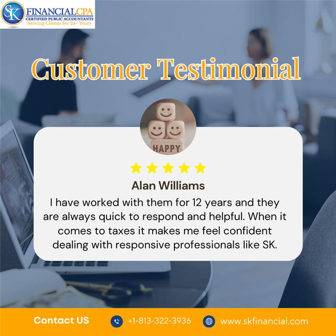 @skfinancial ๐ Hear what our clients have to say about their experience with SK Financial CPA Click ๐ https://t.co/eDqHHot2eh #bookkeeping #TaxExtension #taxcredits #IRSUpdates #businesstaxes #taxseason #taxplanning #TampaTaxes #taxdeadline #taxdeductions #TaxSavings #TaxSavinskfinancial.com/testimonialsHot2eh #bookkeeping #TaxExtension #taxcredits #IRSUpdates #businesstaxes #taxseason #taxplanning #TampaTaxes #taxdeadline #taxdeductions #TaxSavings #TaxSavingjfETif